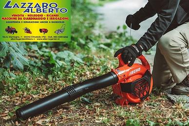 Soffiatore portatile con eccellente capacità soffiante, che permette di rimuovere in modo rapido e comodo detriti, pezzi di legno e foglie depositate sul prato.