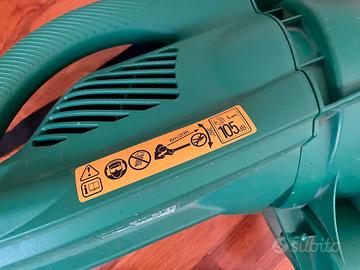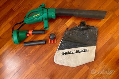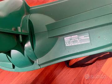 Soffiatore foglie Black&Decker GW250K da 1600W, elettrico con cavo e spina Schuko. Il prodotto è completo di accessori, visibili nelle foto, tra cui sacco di raccolta da 35 litri. Utilizzato pochissime volte, si presenta in condizioni molto buone, con lievi segni d'uso sulle parti in plastica. È presente anche la confezione originale, seppur danneggiata (visibile in foto), con ingombro indicativo di circa 60 cm (lunghezza) x 25 cm (larghezza) x 40 cm (altezza). Ideale come soffiatore elettrico per la pulizia di giardini, cortili e spazi esterni, per uso domestico e fai-da-te. Vendesi a 49,00 euro trattabili. Disponibile per il ritiro a Lodi o a Milano. Spedizione a distanza possibile previo accordo. Formula di vendita: oggetto visto e piaciuto.