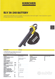 Il Soffiatore Kärcher BLV è nuovo e viene venduto con ricevuta o fattura e garanzia di 2 anni. Venduto a prezzo di realizzo per rimanenza magazzino.
