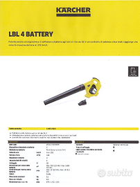Il Soffiatore Kärcher LBL 4 è nuovo e viene venduto con ricevuta o fattura e garanzia di 2 anni. Venduto a prezzo di realizzo per rimanenza magazzino.