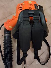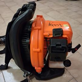 soffiatore a zaino Kibani, progettato per la manutenzione di aree verdi e giardini. Tipo: Soffiatore spalleggiato a scoppio (motore a Miscela al 3%). Utilizzo: Ideale per pulire grandi aree da foglie e detriti. Caratteristiche: Dotato di spallacci per un trasporto ergonomico e comandi integrati sull'impugnatura.