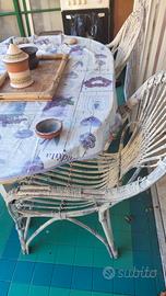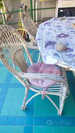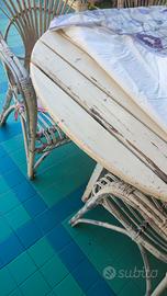 soggiorno esterno con tavolo ovale richiudibile in legno e poltrone in #vimini colore decapè #shabbyschic disponibile per il ritiro a Sanremo