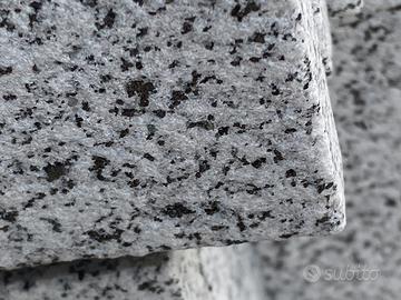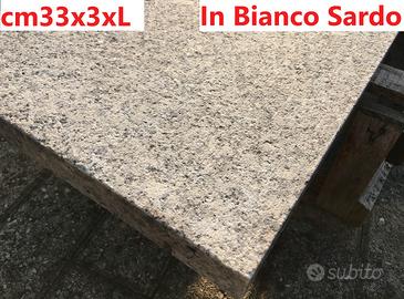 In granito Bianco Sardo, un piano granigliato, un piano e una costa levigata lucido e bisellato, altre 3 coste levigate, Sul piano lucido c'è un taglio di larghezza 6x10mm,