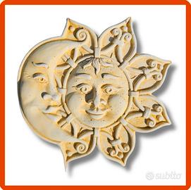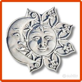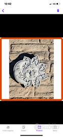 Sole e luna in cemento a parete a muro decorazione. Misure : 26 cm x 26 cm. Resistente a tutti gli agenti atmosferici.