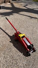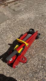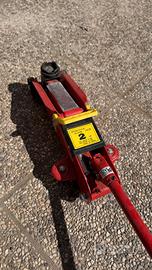 Cric idraulico a carrello da 2 tonnellate, usato, con leva inclusa. In etichetta si leggono portata 2 ton, altezza minima 135 mm e altezza massima 345 mm. Ideale per sollevamento auto in garage o per piccoli lavori di manutenzione. Presenta normali segni d’uso visibili in foto. Venduto come da immagini.