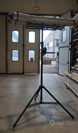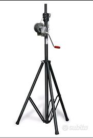 Sollevatore telescopico compatto per faretti, appositamente progettato per un facile trasporto quando ripiegato. È stato certificato per sollevare carichi fino a 85 kg ad un'altezza massima di 3,30 metri e ha un albero superiore Ø 35 mm.