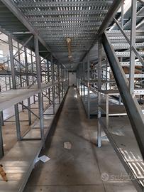 Vendo Soppalco industriale con scaffalature, altezza 5 metri, lunghezza 22 metri, larghezza 4.85 metri, per un totale di 106,7 mq.