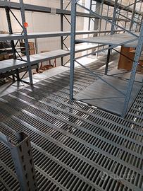 Vendo Soppalco industriale con scaffalature, altezza 5 metri, lunghezza 22 metri, larghezza 4.85 metri, per un totale di 106,7 mq.