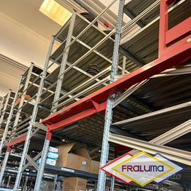 Soppalco scaffalato in metallo completo di ripiani, usato ma in perfette condizioni.
