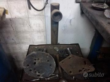 Sostegno cavalletto in metallo per motori auto. Dotato di tavolinetto portaoggetti sganciabile. Si fornisce con due piastre forate predisposte per il supporto di tipi diversi di motori.