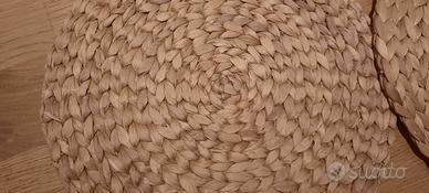 Vendo coppia di sotto vassoi in paglia intrecciata. Ideali sia come decorazione sia come protezione per tavoli e ripiani. Diametro 36 cm circa