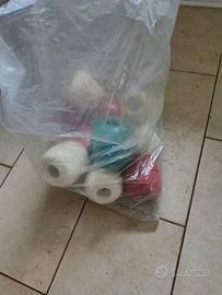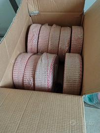 6 rotoli spago bianco da 300 gr circa 5 euro cadauno , 6 rotoli spago rosso da 300 grammi circa 5 euro cadauno ,7 rotoli di rete da 50 metri da 18 altezza 67,5 mm 20 euro cadauno , 2 rotoli rete da 50 metri altezza 80 mm rinforzata 25 euro cadauno ,kilogrammi 6,70 di spolette 14 euro a kg ( circa 20 spolette) e 3 secchi di budella naturali. Il prezzo per le budella e 100 euro. Vendibili singolarmente.