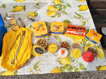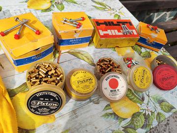 Vendo vecchia pistola sparachiodi BERFI vintage completa di chiodi varie misure e cartucce calibro .22 Fiocchi-Beretta.