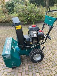 Spazzaneve modello: 6240810X61. Gommato con motore a benzina "Briggs & Stratton" 800 (snow series), 5 CV, cilindrata 206 cc. Avviamento a strappo, bocca d'ingresso neve cm 60 e scivolo di scarico orientabile.