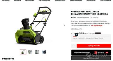 Spazzaneve Greenworks da 80 Volts ad alta potenza a Batterie senza fili.