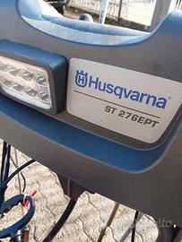 Spazzaneve Husqvarna modello ST 276EPT a doppio stadio, tenuta in perfette condizioni, monta un motore briggs e stratton da 10 cavalli, una larghezza di lavoro di 75 cm, cingoli a triangolo per una perfetta aderenza, un faro a led che permette l'illuminazione della strada e quindi poter lavorare anche in situazioni più buie, freni di sterzo con funzione di bloccaggio cingoli, per consentire una perfetta sterzata, maniglie riscaldate, regolazione manuale della direzione del camino, asta per la pulizia del camino dalla neve pesante e bagnata.