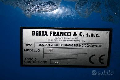 Spazzaneve a turbina ampiezza di lavoro 60 cm. in ottime condizioni, pari al nuovo. Applicabile su ogni tipo di fresa. Vedere sito Berta per maggiori informazioni. Prezzo di listino 1.699€.
