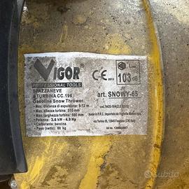 SPAZZANEVE VIGOR SNOWY-65 a turbina usata buono stato Macchina praticamente nuova usata pochissimo Motore a benzina 200 cc 5hp Getto neve fino 12 mt