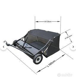 Spazzatrice raccogli foglie da prato trainabile con trattorino. Larghezza spazzola 120 cm. Larghezza totale 140 cm. Ruote in gomma. Usata tre volte.