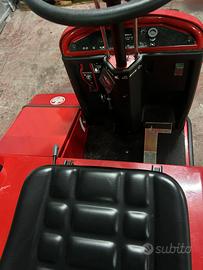 Spazzatrice uomo a bordo modello RCM, ideale per la pulizia di piazzali, capannoni, parcheggi, aree industriali e cortili.