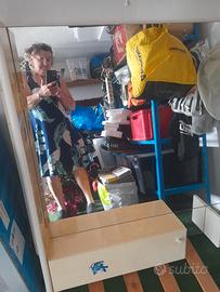Causa inutilizzo cedo come da foto grande specchio con mobile e luci 15 euro, mantovana in legno 10 euro e tavolo gira tv 10 euro. Tutto in buone condizioni. Ritiro a mano tranne il tavolino che posso spedire. Prezzo ribassato.