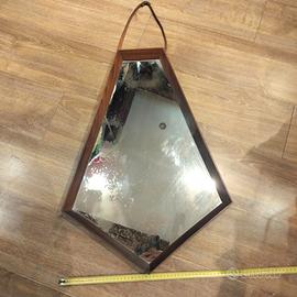 specchio di design italiano vintage anni 50/60 a forma di pentagono caratterizzato da uno stile Mid-Century Modern.