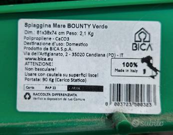 Comoda sedia pieghevole, perfetta per giardino o spiaggia. Realizzata in plastica resistente. Come da fotografie.