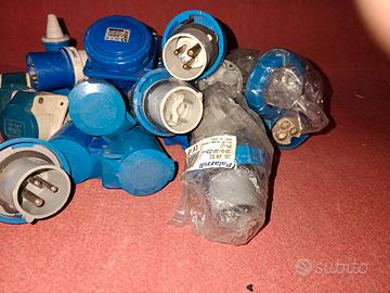 vendo come da foto un totale di 28pezzi (alcuni ancora sigillati) ,ci sono N5pz prese CEE 16A 2P+T, N14pezzi spine mobili CEE ,N5 prese da incasso da quadro elettrico ,e N4 prese mobili CEE