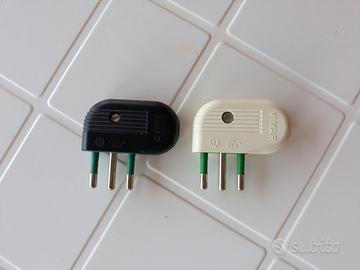 Spina 16A, marca VIMAR, bianca, disponibili 6 pezzi. Spina 6A, marca OVA, nera, disponibili 3 pezzi. Spina 10A, marca VIMAR, 1 pezzo colore nera. Presa 10A, marca VIMAR, bianca, disponibili 8 pezzi. Materiale nuovo, in buono stato. Prezzo 1 euro ciascuna.
