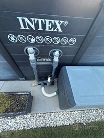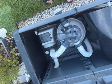 Completa di scaletta, skimmer, cloratore galleggiante, termometro, pompa con filtro a sabbia, telo di copertura, più eventuale termopompa (per chi non la volesse, la vendo separatamente a 250 euro) Usata 2 stagioni.