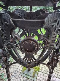 Portavaso in ferro battuto, decorato a saldatura con motivi floreali e animali. da giardino esterno. altezza circa cms 150. peso 45-50 kgs. periodo : primi del '900.