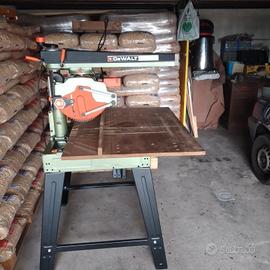 SQUADRATRICE DEWALT DW 1501 a 220 V. Con Motore da 1,5 Hp. Motore asincrono (senza spazzole)Con gambe da supporto. La macchina non è solo una Squadratrice visto che il motore scorre su un binario a braccio può tagliare in qualsiasi modo e con qualsiasi angolazione desiderata. La Squadratrice si trasforma in fresatrice ( Tupy )