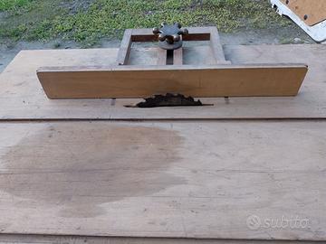 Vendo squadratrice anni 30 come da foto, altezza lama regolabile, struttura in rovere, condizioni eccellenti, bella, rara. Recuperata in una vecchia falegnameria, il piano misura 70x100, oggetto pesante, molto pesante. Bella per un museo, per allestire un negozio d'epoca, funzionante e usabile all'occorrenza.