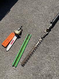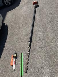 Vendo sramatore telescopico a benzina STIHL HT 101 (professionale) Potatore professionale in ottime condizioni, ideale per lavori di potatura, sfrondatura e manutenzione del verde. Perfetto sia per uso intensivo che per privati esigenti. 🔧 Caratteristiche principali: •Motore STIHL 4-MIX potente e affidabile •Sistema di decompressione automatica per un avviamento facilitato •Sistema antivibrante STIHL per maggiore comfort durante l’utilizzo prolungato •Asta telescopica professionale rigida e regolabile rapidamente •Lunghezza regolabile fino a circa 5 metri •Trasmissione robusta con ingranaggi in magnesio •Gancio per rami integrato per una rimozione facilitata •Struttura bilanciata e maneggevole ⚙️ Specifiche tecniche: •Modello: STIHL HT 131 •Alimentazione: benzina •Tipo motore: 4-MIX •Lunghezza totale: circa 270 – 390 cm (estensibile) •Catena: 1/4” PM3 •Peso: circa 7,8 kg •Utilizzo: potatura alberi, rimozione legno secco/danneggiato, frutticoltura 💡 Attrezzo ideale per professionisti del settore (giardinieri, manutentori del verde) o per chi cerca qualità e prestazioni elevate. 📩 Per info, foto o prova contattatemi senza problemi.
