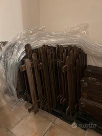 Vendo staccionata in legno usata circa 27 metri lineari ,30 paletti 10x10 altezza 1 m con staffe a “C” per il fissaggio e ho anche molti pezzi di ricambio per la staccionata nuovi verniciati e mai usati. Va riverniciata e da rivedere alcuni pezzi. Il tutto si trova a Faggiano (TA) ritiro a mano
