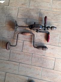 pezzi interessanti per addobbare abitazione colonica, comprende 1 stadera per pesare, 2 trapani a mano , e mestolo alluminio. oggetti vintage da utilizzare come arredi.hanno segni del tempo con patina leggera di ruggine in alcuno punti ovviamente.vendo per mancanza di spazio. prezzo interessante