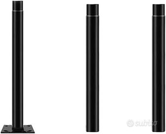 Caratteristiche: Lunghezza totale staffa: 3 MT; Lunghezza staffe singole: 1 MT; Peso: 1 kg; Materiale: Metallo; Diametro staffa: 7.6 CM; Dimensioni piastra fissaggio a terra: 15x15 CM; Colore: Nero; Fori sulla piastra per fissaggio a terra.