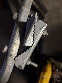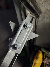 Come da titolo e da foto, vendo 3 staffe tendi cavo per stendi bucato 5 fori, in metallo zincato lunghe 60 cm, larghe 3 cm complete di morsetti, dadi e bulloni