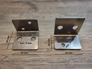 Vendo 8 staffe piastre angolari a elle acciaio inox forate Spessore 1,5 mm Peso 30 gr cad vedi misure in foto