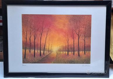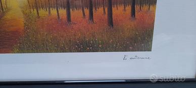 Vendo stampa a colori con soggetto autunnale compresa di cornice nera misure: larghezza cm. 54 altezza cm. 39 misure comprensive di cornice firmato BOSSI