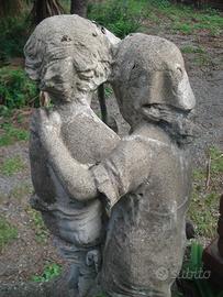 Statua da giardino con qualche parte danneggiata, alta 96 cm e larga 40 cm.