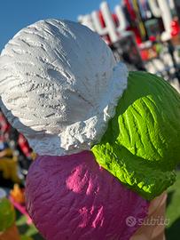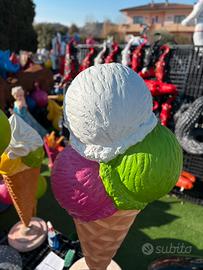 Statua gelato tricolore in vetroresina, palline tricolori con base in cemento.