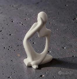 Elegante statua decorativa “pensante” realizzata in resina minerale con finitura bianco satinato effetto porcellana.