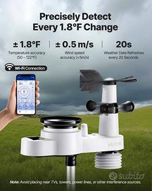 Sensore esterno 5 in 1: monitora temperatura, umidità, precipitazioni, velocità e direzione del vento, oltre al punto di rugiada, alle fasi lunari e alle previsioni meteorologiche per le prossime 6-12 ore (visualizzate solo sugli schermi interni)