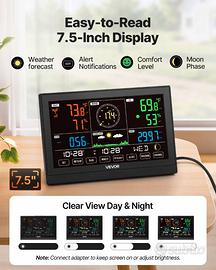 Display HD da 7,5 pollici: goditi una visione cristallina di tutti i tuoi dati meteorologici con la nostra stazione meteorologica wireless. L'ampio display con 4 livelli di luminosità si adatta perfettamente al tuo salotto o alla tua camera da letto per una lettura ottimale sia di giorno che di notte