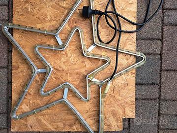 Set composto da 2 Stelle di Natale per esterno/interno con tubi al LED impermeabili a luce fissa su struttura in ferro rigido.