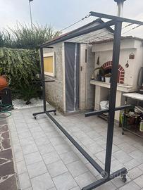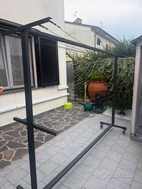 Vendo stendi biancheria da giardino o terrazzo in ferro, riverniciato da poco, con ruote girevoli con fermi.