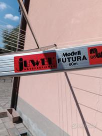 lunghezza filo 60 metri, lunghezza x trasporto 2.20 m, manca copertura ma c'è il pezzo che serve. Usato 1 volta per prova, è grande per miei spazi