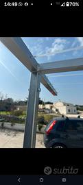 stendino ferro zincato alto 1,85 m circa con le ruote, lungo 2 m e largo 80cm.
