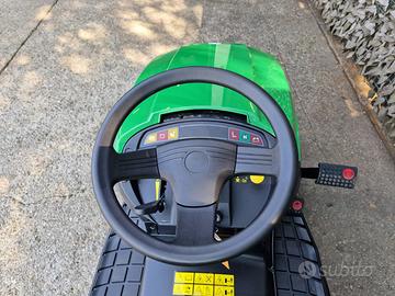 Trattorino tosaerba prodotto da Stiga, piatto Castelgarden bilama 92 cm di taglio, trasmissione idrostatica, motore bicilindrico Stiga 550, cesto raccolta 300 litri di capienza Prezzo richiesto 3800,00 Possibilità di trasporto previo accordo Per maggiori info contattare